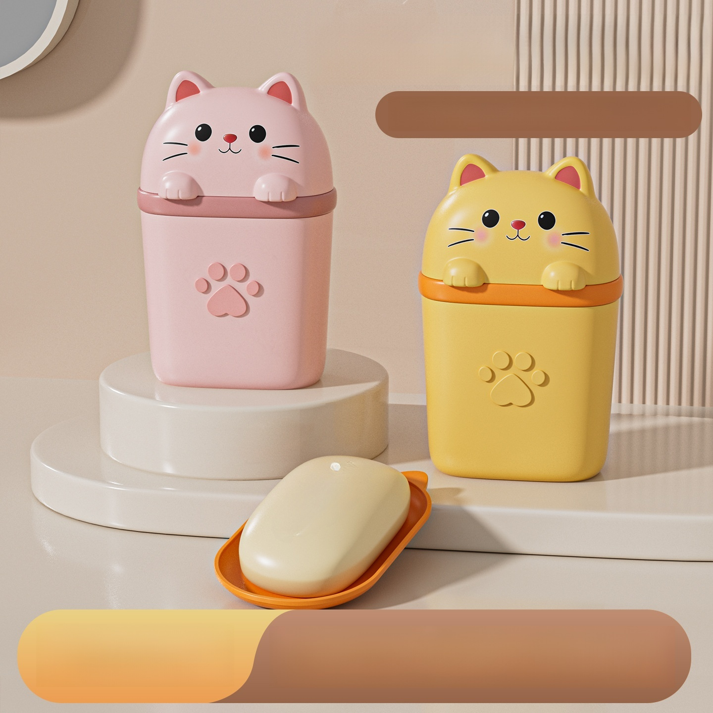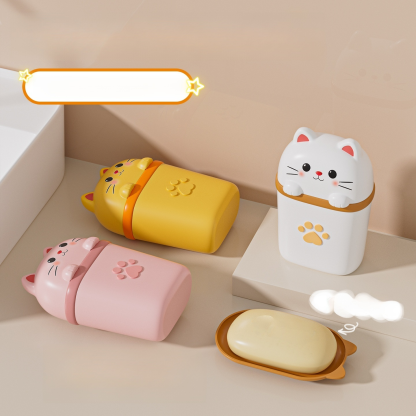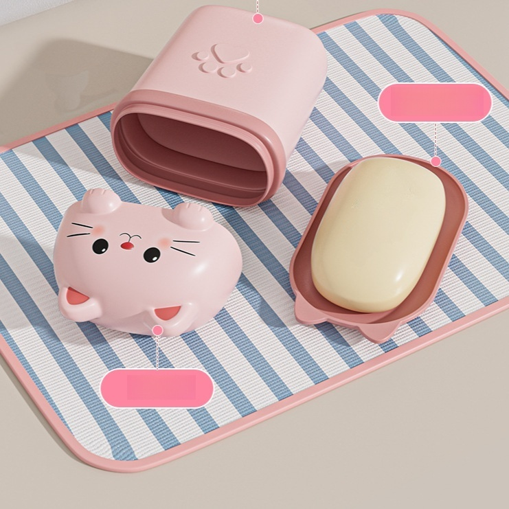 肥皂盒可愛貓咪旅行便攜帶蓋密封瀝水香皂收納盒家用(三個裝)